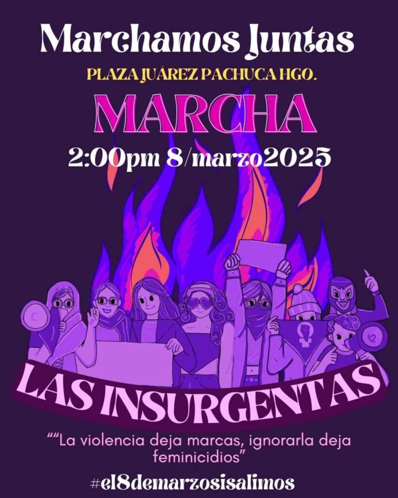 Colectivas feministas han lanzado la convocatoria para participar en la marcha del 8 de marzo en Pachuca, en el marco del Día Internacional de la Mujer.