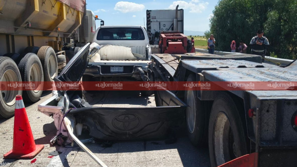 De acuerdo con los reportes, mientras la circulación permanecía completamente detenida por un choque previo en el kilómetro 129, el conductor de una camioneta tipo pick up Toyota Hilux, color blanco, que circulaba a gran velocidad, no se percató de lo sucedido y terminó impactando contra un vehículo compacto, un tráiler contenedor y otro de plataforma.