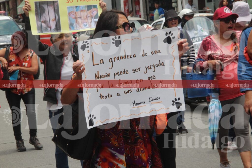 Este domingo, integrantes del refugio Cuatro Patitas Un Corazón realizaron una manifestación pacífica en Pachuca, la cual inició al pie del Reloj Monumental, con el objetivo de alzar la voz por la protección de animales y de quienes los defienden.