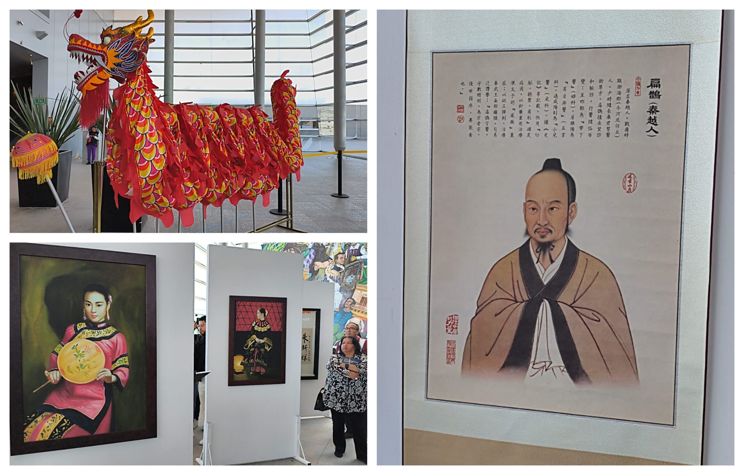 La muestra está integrada por 15 obras alusivas a la tradición del Año Nuevo Chino, entre pinturas, óleos, artesanías, así como figuras de dragón y león.