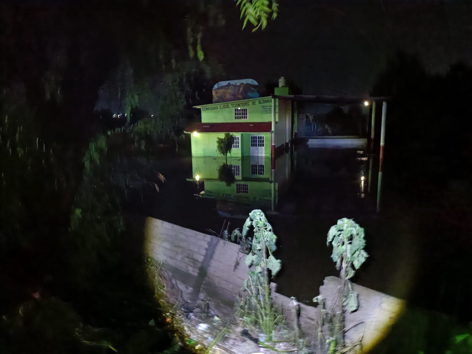 En recorrido por las zonas afectadas, se comprobó que la delegación ejidal de Tezontepec de Aldama también se vio afectada, pues la barda se ladeó por el nivel del agua y el inmueble presentó anegaciones considerables.