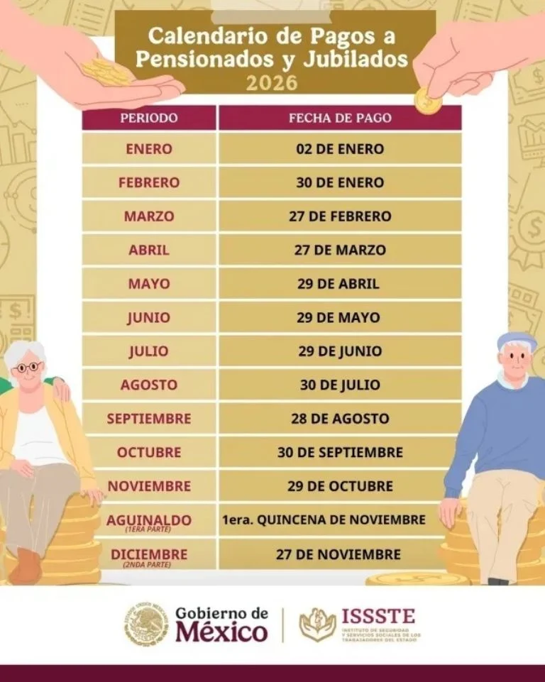 El Instituto de Seguridad y Servicios Sociales de los Trabajadores del Estado confirmó que el pago correspondiente a abril 2026 será depositado el viernes 27 de marzo, último día hábil previo al inicio del mes.