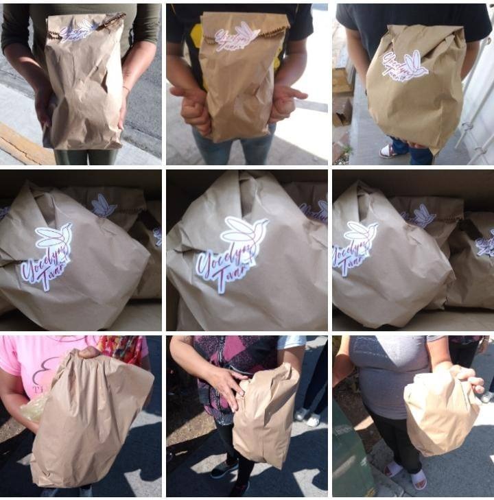 Incluso, las etiquetas que van en las bolsas de papel con el nombre de la presidenta también incluyen un ave ajena a la identidad de la administración, en lugar de estar rotuladas con el logo oficial, por eso, se señala promoción personal de la alcaldesa a través de recursos públicos.