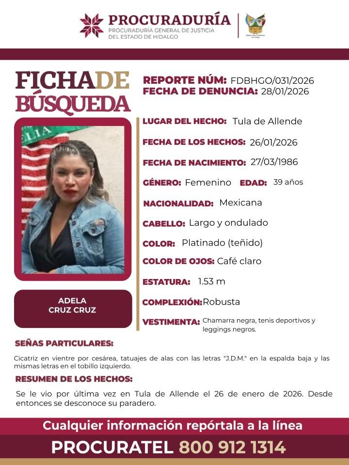 El hombre acudió a levantar una carpeta de investigación el miércoles 28 de enero e incluso comenta que hizo un recorrido por los lugares que la mujer frecuentaba con las autoridades, pero no lograron dar con el paradero de Adela.