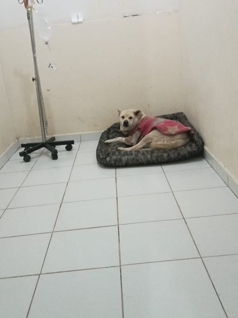 La perrita fue sometida a una cirugía ortopédica exitosa y permanece bajo cuidado médico, en proceso de recuperación.