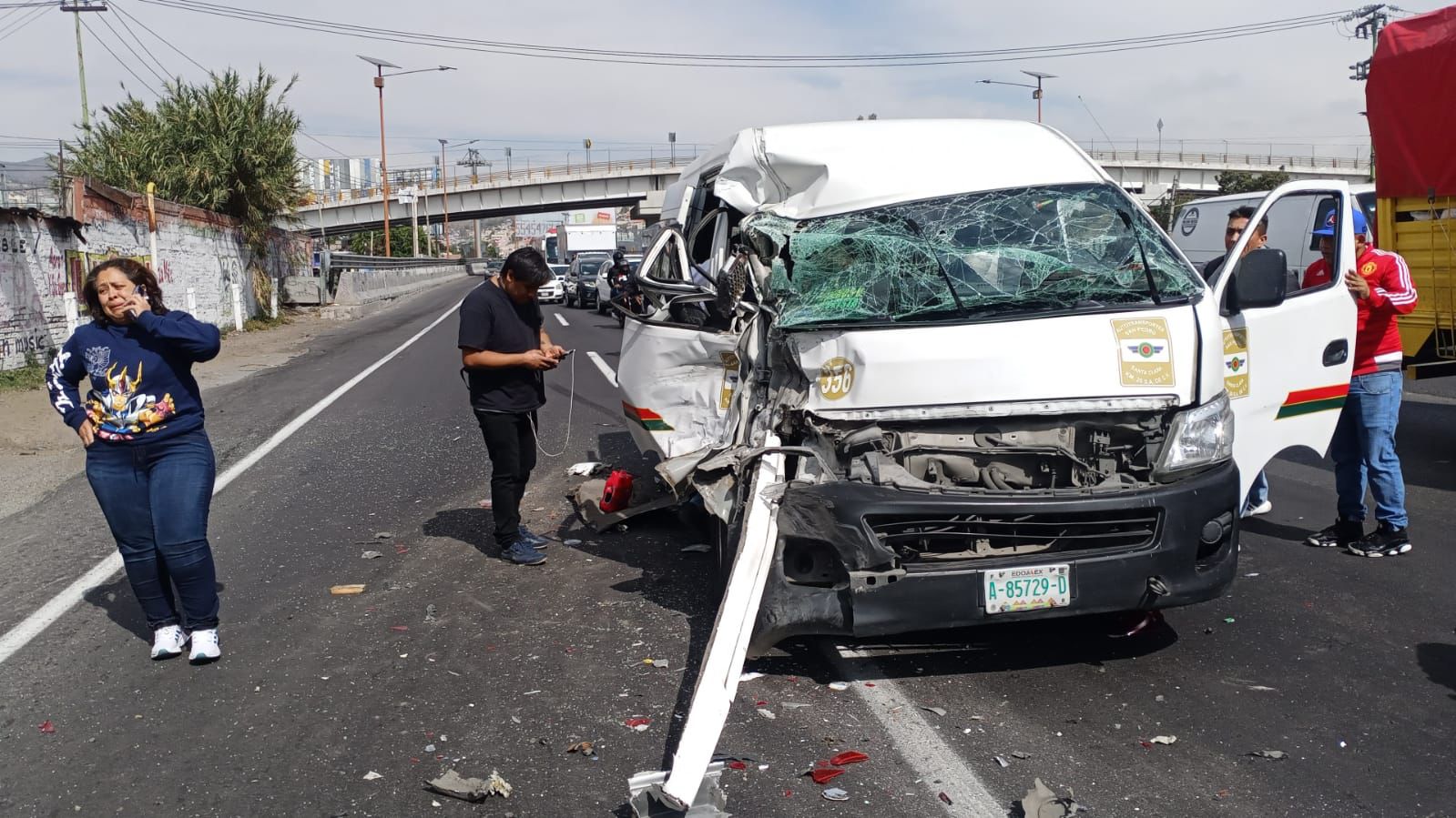 Una camioneta Urvan de la ruta San Pedro-Santa Clara chocó hace unos minutos contra la parte trasera un camión de pasajeros sobre el kilómetro 16 de la autopista México- Pachuca a la altura de la zona conocida como las bodegas, con dirección a la Capital del país.
