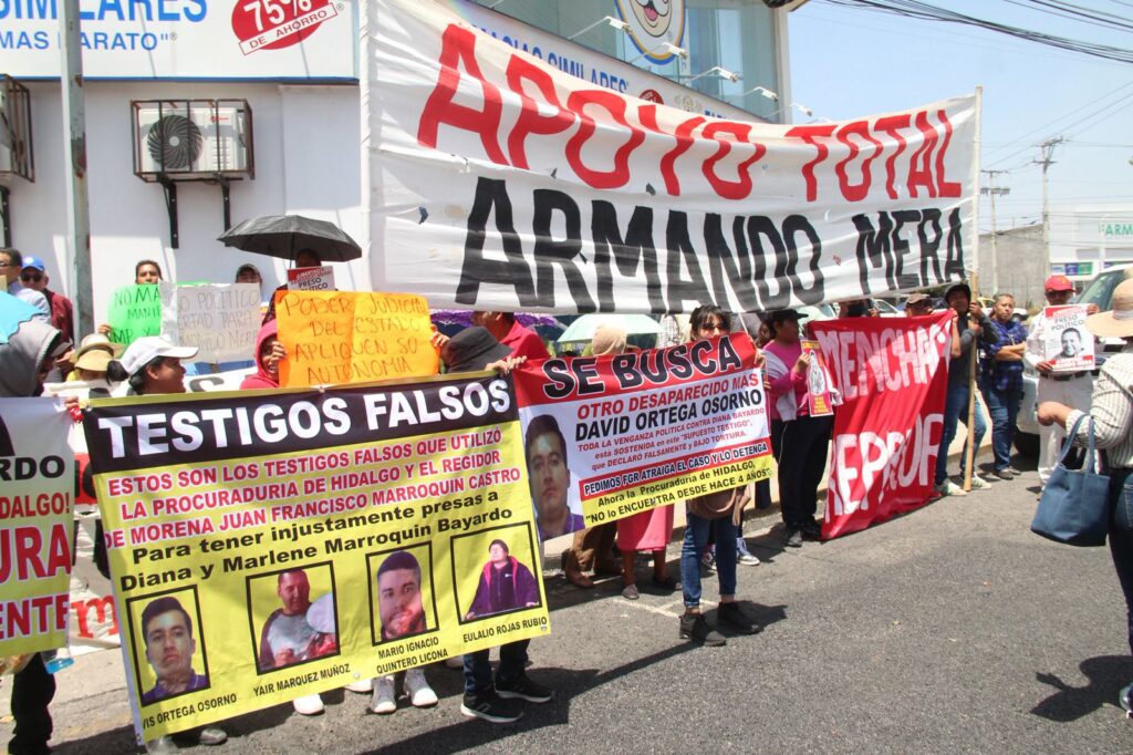 La protesta ocurre tras la vinculación a proceso de Armando Mera Olguín en abril de 2024, acusado del delito de uso ilícito de atribuciones y facultades durante su gestión como presidente municipal de Progreso de Obregón. Desde entonces, Mera permanece privado de su libertad mientras enfrenta el proceso judicial.