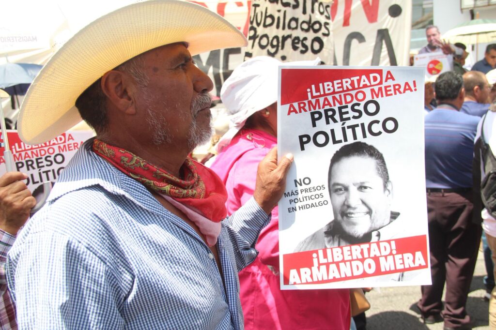 De manera simultánea, otro grupo de manifestantes se congregó frente al Congreso del Estado, donde extendieron su demanda de liberación a otros líderes políticos detenidos: Armando Mera Olguín, Miguel Ángel López y Diana Bayardo. Con pancartas que decían “Apoyo total a Armando Mera”, “Liberen a Armando Mera”, “Jubilados de Progreso exigimos libertad para Mera” y “No más presos políticos en Hidalgo”, los manifestantes denunciaron una presunta estrategia de represión política orquestada desde el gobierno estatal.