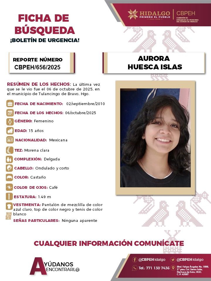 Cualquier información debe ser canalizada a la Comisión de Búsqueda de Personas de Hidalgo.