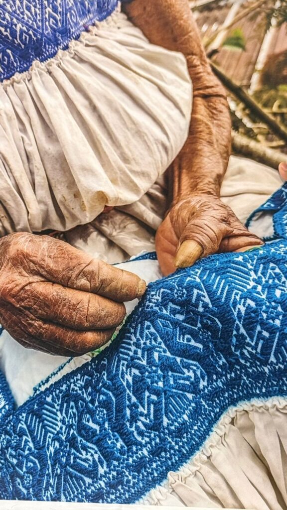 Aunque no se considera artesana de tiempo completo, Karina aprendió desde los 10 años el bordado tradicional conocido como pepenado, una técnica compleja que requiere precisión y paciencia. Este tipo de bordado, característico de su comunidad, implica contar cuidadosamente los hilos de la tela para formar figuras, lo que lo convierte en un proceso laborioso y demandante. Las prendas elaboradas con esta técnica pueden alcanzar precios de entre tres mil y cuatro mil pesos, dependiendo de su complejidad.