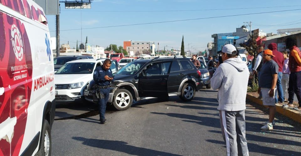 Los hechos ocurrieron cerca de las 8:30 horas, justo frente a la bodega Aurrerá, donde se registró una colisión múltiple que bloqueó parcialmente la vialidad en el área. Según información policiaca, tres vehículos se vieron involucrados en la carambola, resultando en diversas personas afectadas.
