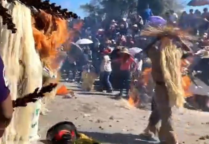 Los hechos ocurrieron frente a la presidencia municipal, cuando la quema de toritos de salio de control , ocasionando que se incendiaran algunos de los disfrazes de palmas que portaban los participantes, entre ellos algunos niños.