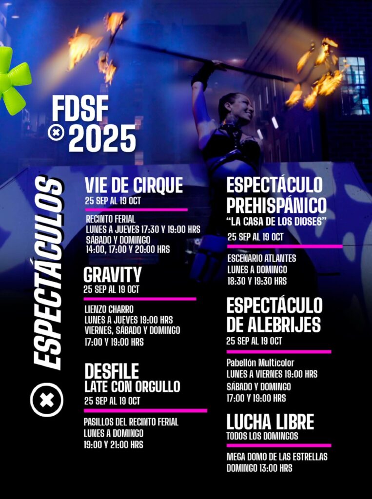 Este año, la Feria San Francisco Pachuca 2025 ofrece a visitantes y turistas una variedad de espectáculos para todos los gustos y todas las edades, estos se incluyen con el boleto de entrada y estarán disponibles hasta el 19 de octubre.