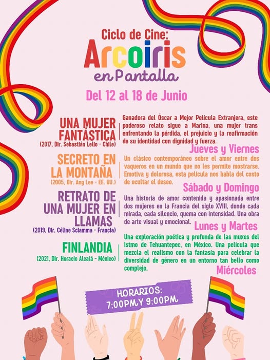 Las proyecciones se realizarán en horarios de 7:00 pm y 9:00 pm, ofreciendo a la comunidad una oportunidad para reflexionar y sensibilizarse sobre temas relacionados con la diversidad, amor e identidad.