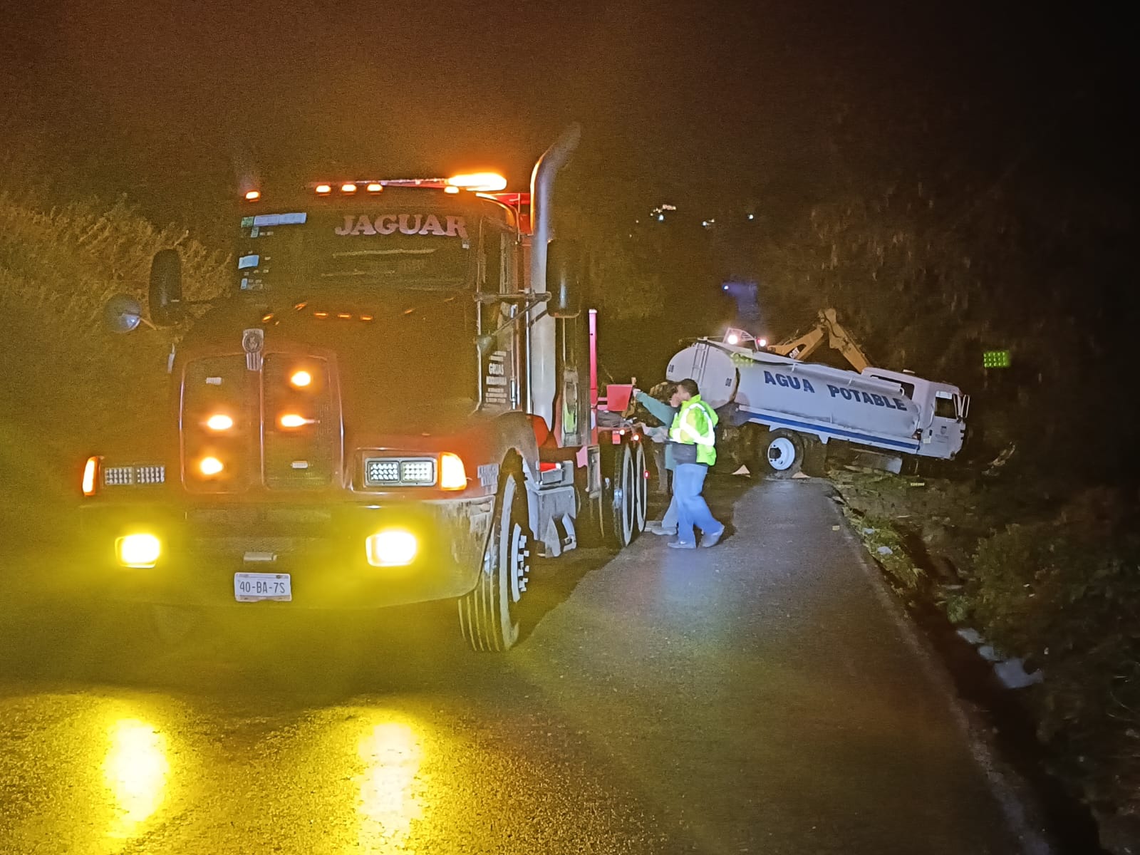 Además, durante la noche del viernes, se realizaron maniobras para poder remolcar la pipa, la cual se fue hacia la orilla de la vialidad y tuvo que ser remólcala con grúa para poder ser movilizada de la zona de riego, al igual que otro vehículo.