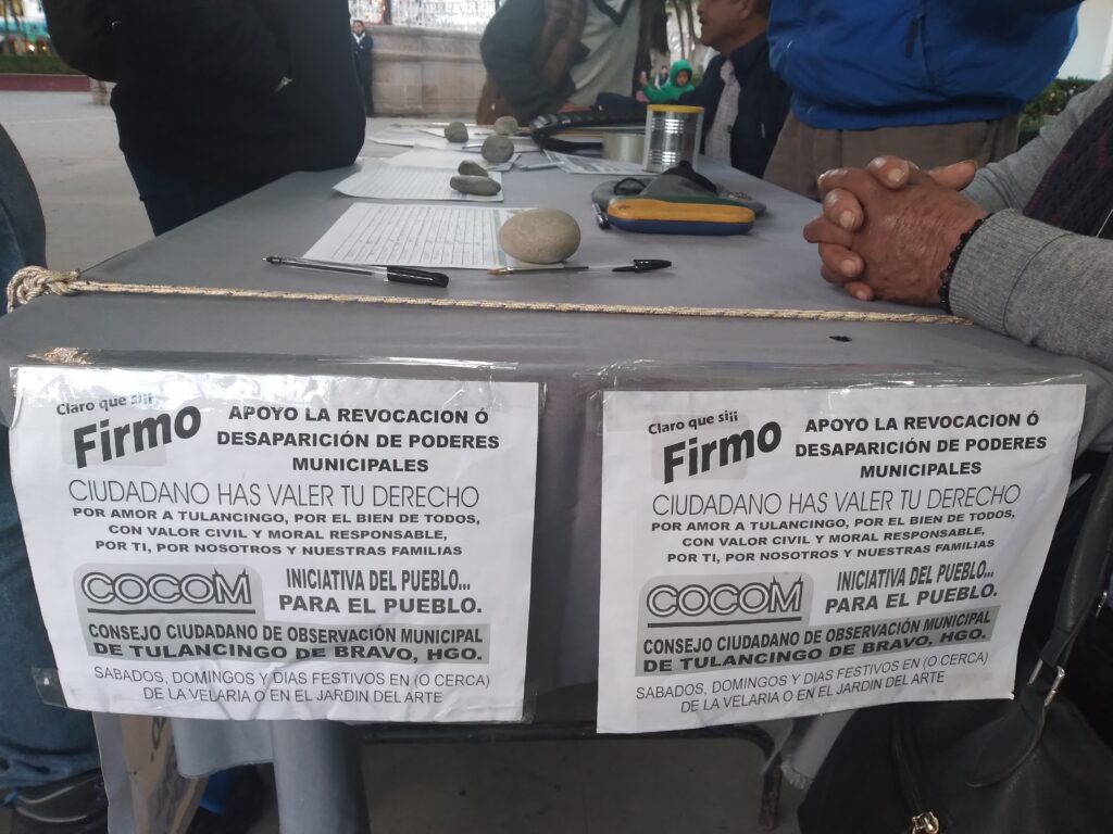 El Consejo Ciudadano de Observación Municipal (COCOM) continúa recolectando firmas con el objetivo de solicitar la revocación o desaparición del poder municipal en Tulancingo.