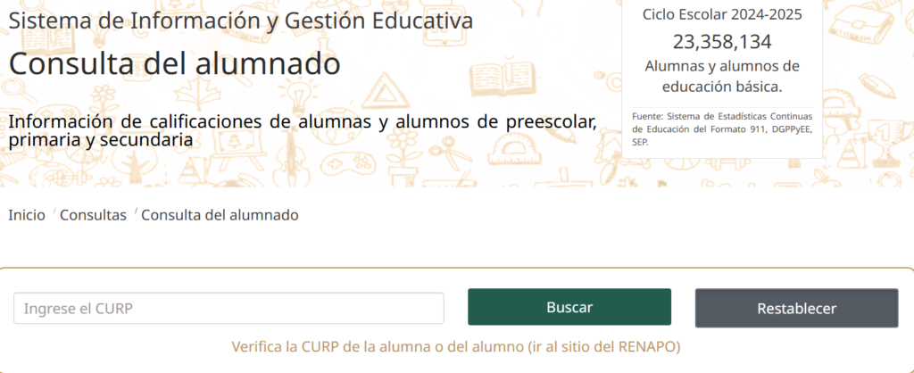 - Ingresa la CURP del alumno o alumna