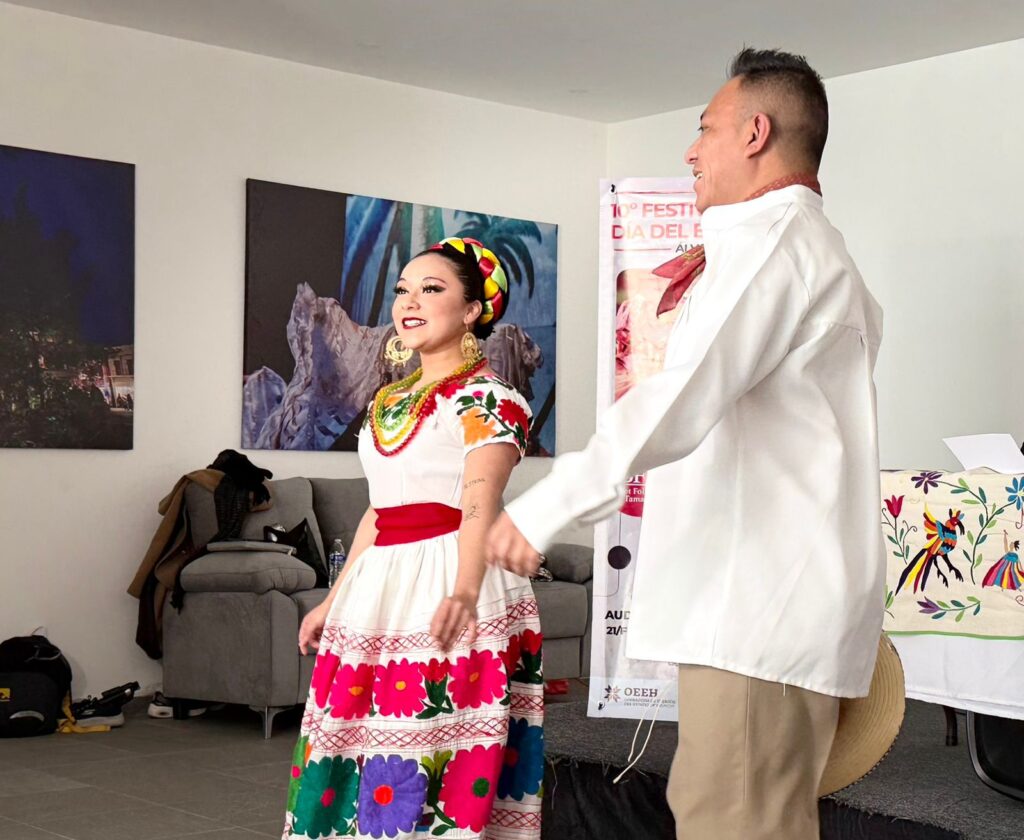 En cuanto a la técnica, reconoce que el zapateado es uno de los mayores desafíos dentro del folklore mexicano. “Es muy difícil, depende mucho del ritmo. Hay canciones más lentas y otras más rápidas, con pasos más complejos. Pero nada es imposible”, señala.