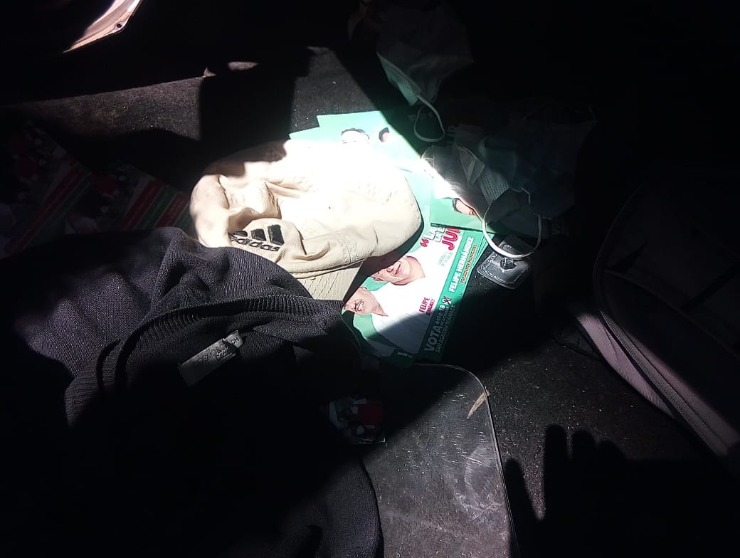 El sujeto fue detenido en el Parque Pasteur y, al ser revisada su unidad, se encontró que traía consigo propaganda del PRI de San Agustín Tlaxiaca, a nombre del candidato Felipe Hernández. En la cajuela traía camisetas y volantes.
