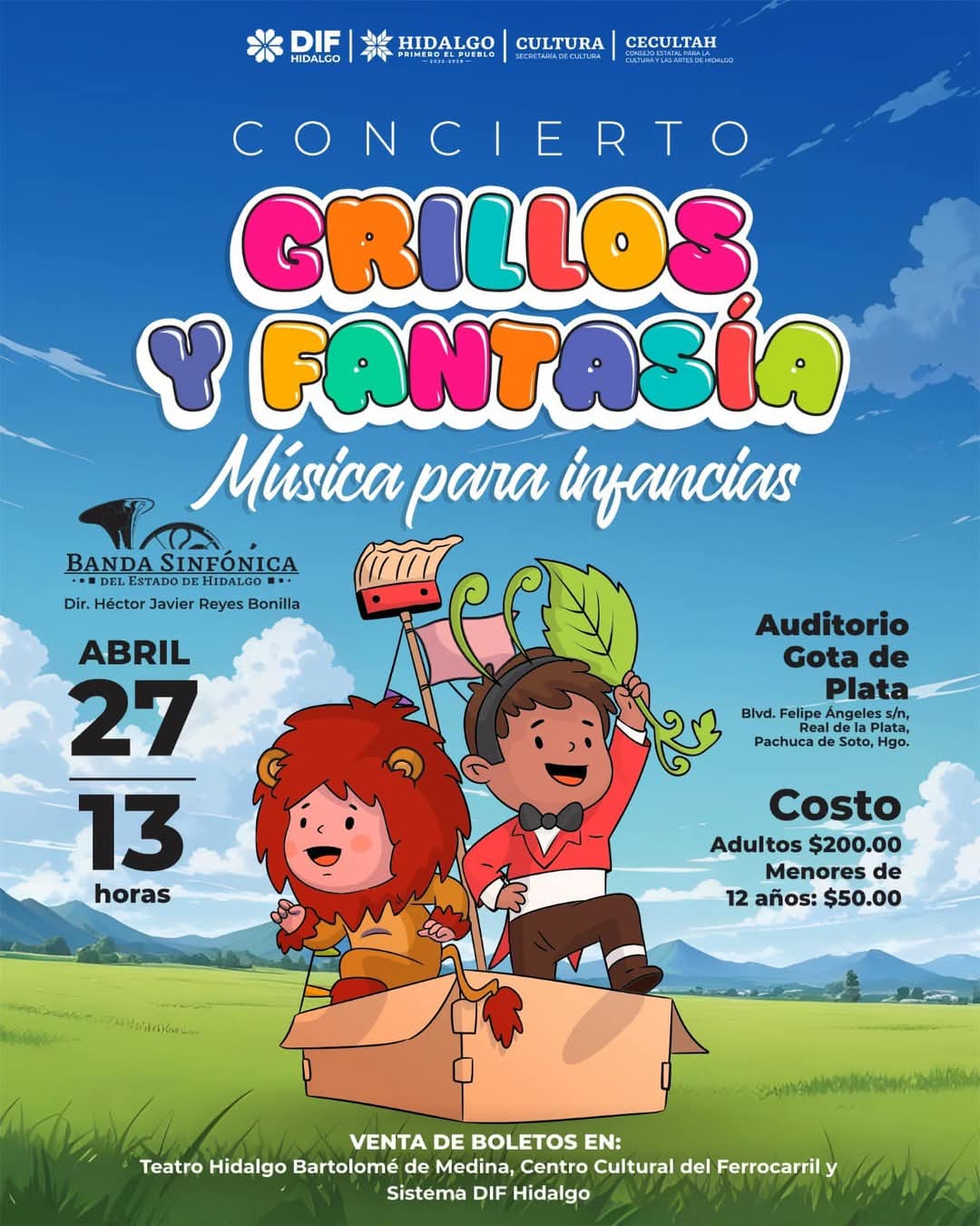 La Banda Sinfónica del Estado de Hidalgo prepara un evento especial para celebrar el Día del Niño y la Niña con música que ha marcado generaciones. El Concierto De Grillos y Fantasía se llevará a cabo el próximo 27 de abril a las 13:00 horas en el Auditorio Gota de Plata de Pachuca.