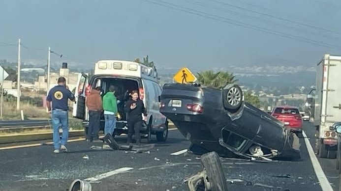 De acuerdo con los reportes preliminares, un automóvil particular azul perdió el control y volcó sobre su costado izquierdo, resultandos lesionados sus dos ocupantes. Minutos después, metros adelante, un camión de carga se salió del camino y terminó volcado en el acotamiento; en este caso, el conductor resultó ileso.