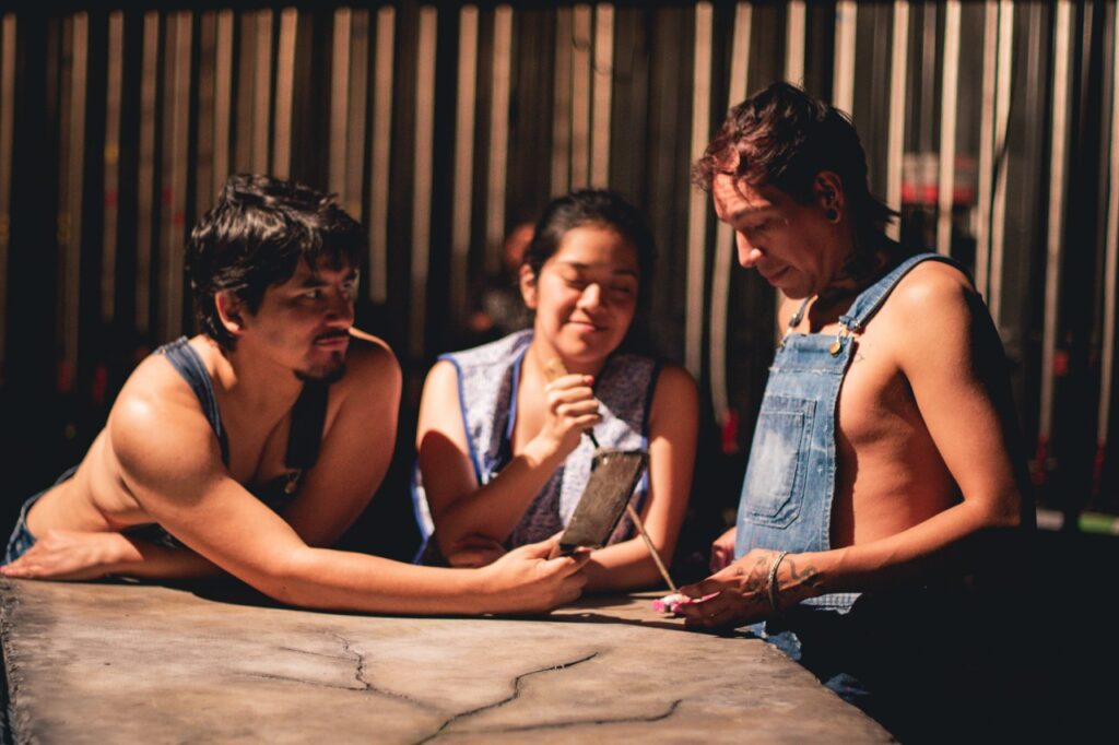 El espacio escénico adopta forma de arena, rodeado por el público, como si se tratara de una ceremonia o un duelo colectivo. Las estructuras metálicas evocan una cancha, una reja, un altar o una pista de baile. En esa geografía mutable, los cuerpos de siete actores provenientes de Hidalgo, Estado de México y Ciudad de México dan vida a un “cuerpo barrializado”, construido desde la escucha, la improvisación y el testimonio.