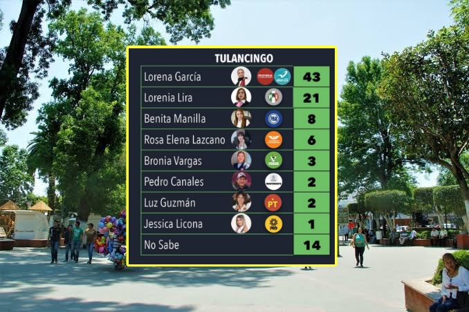En Tulancingo, la contienda electoral se muestra decidida, con Morena llevando la delantera en la intención de voto, de acuerdo con los datos más recientes. Lorena García, representante de Morena en alianza con otros partidos, ha obtenido un sólido 43% de apoyo entre los votantes.