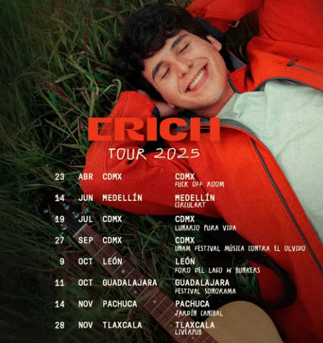 El músico mexicano Erich, originario de Aguascalientes, se presentará este viernes 14 de noviembre en El Caníbar, ubicado en J. C. Doria 100C, Centro de Pachuca, el acceso al recinto comenzará a las 19:00 horas y los boletos están disponibles en Passline y tendrán un costo de 200 pesos en entrada general y 500 pesos para el meet & greet.