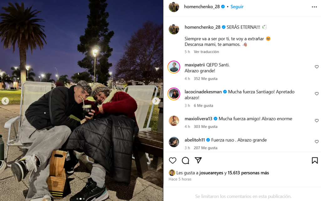 A través de su cuenta de Instagram, el futbolista expresó su dolor con unas palabras breves pero llenas de amor: