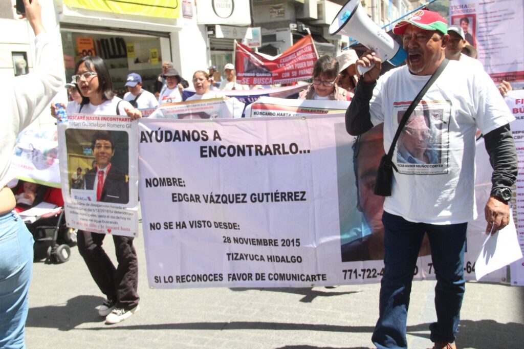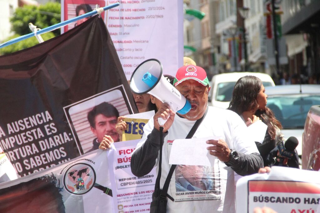 La manifestación fue encabezada por el colectivo “Buscando hasta encontrarte”, conformado por familiares de desaparecidos en el estado de Hidalgo. Sus integrantes denunciaron que, pese a las promesas institucionales, la Procuraduría y la Comisión de Búsqueda de Personas han abandonado la búsqueda de víctimas de larga data, limitando los esfuerzos a casos recientes y dejando en el olvido expedientes que tienen más de 10 o 15 años.