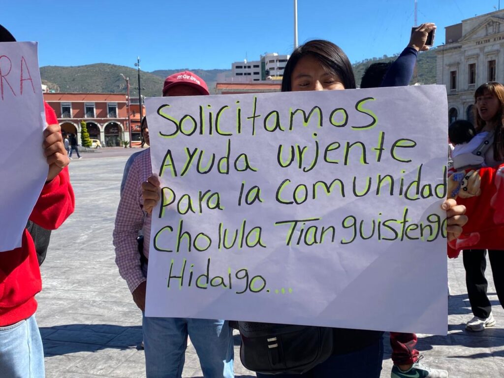 Un grupo de familiares originarios de Cholula, municipio de Tianguistengo Hidalgo se manifestó este lunes a las afueras del Palacio de Gobierno para exigir apoyo urgente a su localidad, actualmente incomunicada por vía terrestre y sin acceso a alimentos, agua potable ni atención médica, tras los recientes deslaves y afectaciones por lluvias.