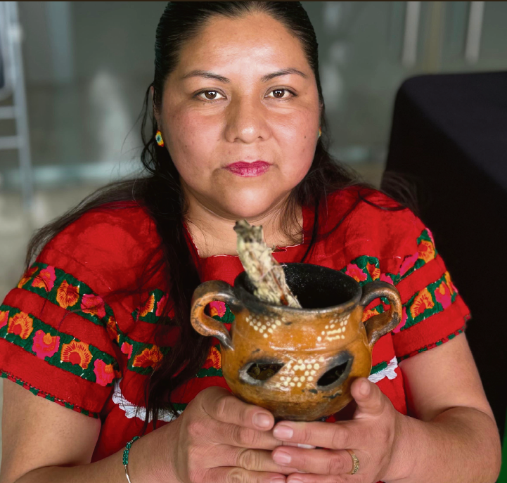 Aunque su formación técnica fue en informática administrativa, su destino fue guiado desde la infancia por la medicina tradicional y la cocina, dos pilares culturales fundamentales en su comunidad. “Esto se hereda. Desde muy chiquitas ya estamos en la cocina jugando con la masa, con los frijoles, con los chiles. Y en la medicina tradicional, desde antes de los 15 ya hacía limpias y ceremonias energéticas”, comparte.