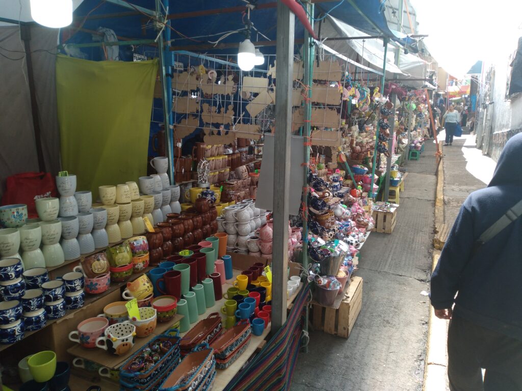“A esta no le dieron la importancia que debería de ser”, se lamenta un vendedor de jarros de barro y recuerdos. Sus productos, coloridos y apilados, esperan a clientes que no llegan.