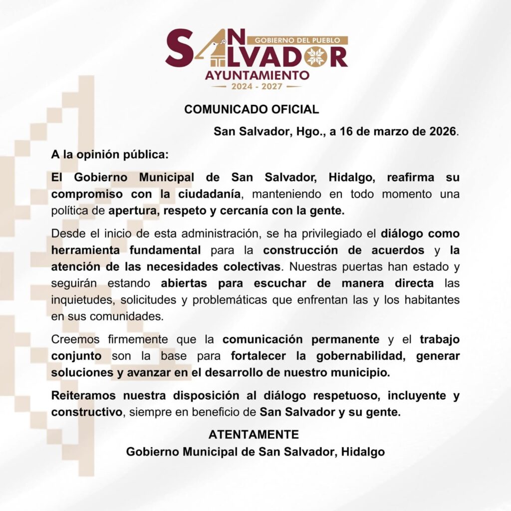 Por su parte el ayuntamiento emitió un escrito en el que asegura ser un gobierno de puertas abiertas y políticas de comunicación para con todas las localidades.