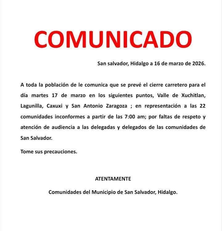 - Habitantes de San Salvador anuncian bloqueos en la México-Laredo