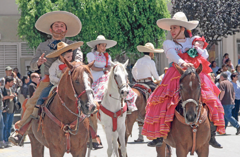En este sentido, cada 14 de septiembre desfilan por las principales calles de la ciudad capital, donde charros y escaramuzas muestran su vestimenta tradicional, acompañados siempre de sus imponentes y leales caballos.