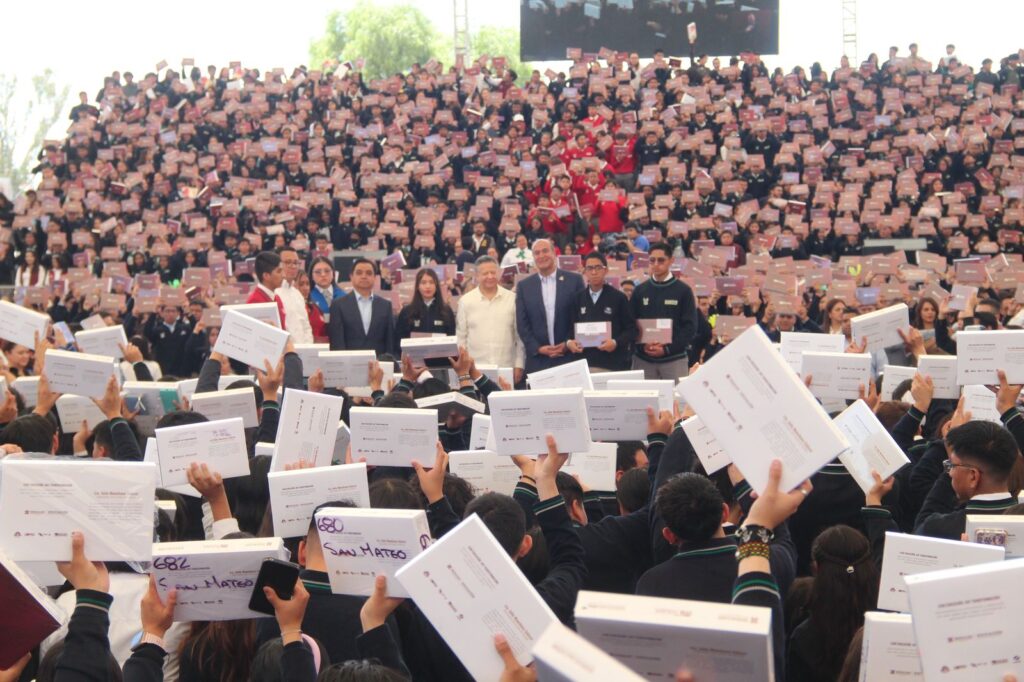 Durante la entrega de tabletas electrónicas a estudiantes de educación media superior, se anunció que diversos espacios públicos y planteles educativos contarán con internet, lo que permitirá que estudiantes puedan tener una mejor educación.