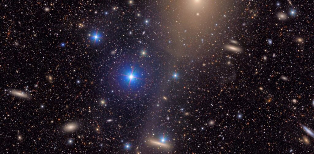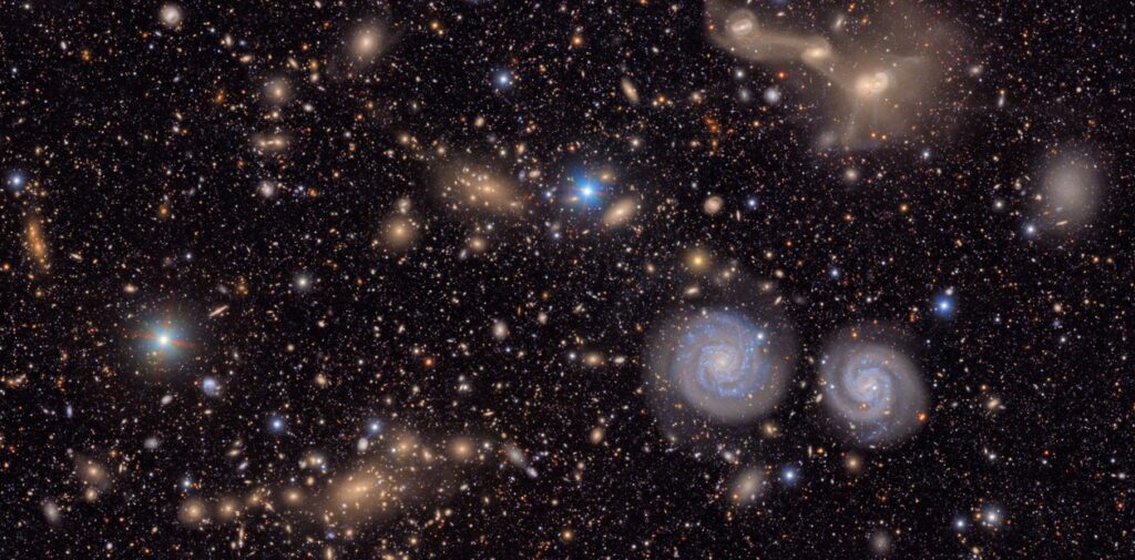 La primera mirada presenta las vibrantes nebulosas Trífida y Laguna, ubicadas a miles de años luz de la Tierra. Un año luz equivale a casi seis billones de millas. También se capturó un grupo de galaxias conocido como el Cúmulo de Virgo, incluyendo dos espirales azules brillantes.