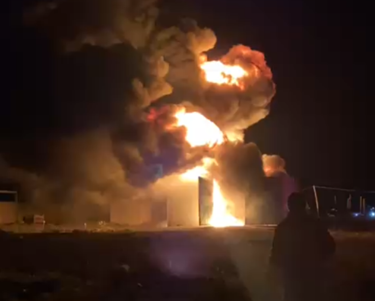 Esta noche se registró un incendio en un inmueble en el que presuntamente se almacenaba huachicol en el municipio de Metepec.