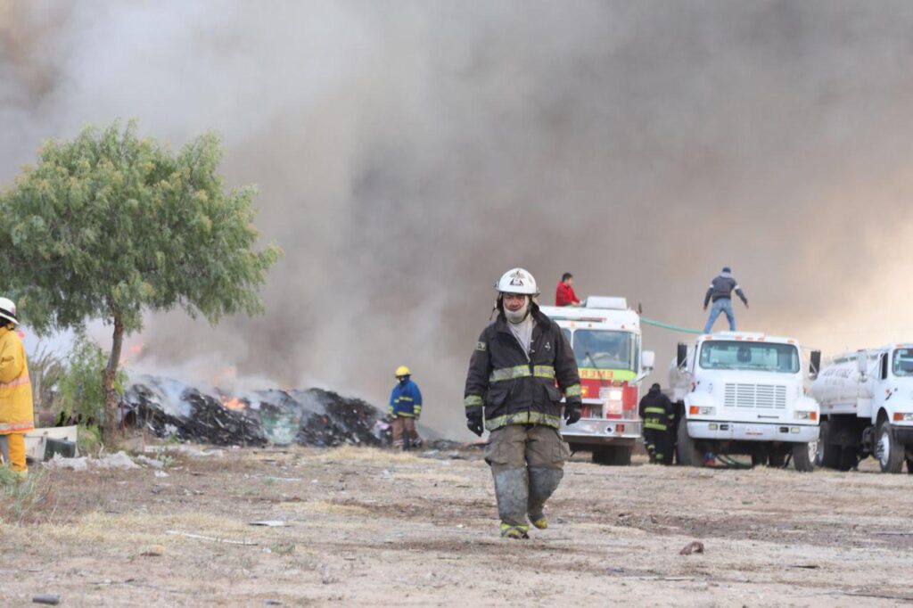 De acuerdo con las autoridades, el fuego inició cuando se quemaban residuos, pero al entrar en contacto con desechos sólidos —entre ellos llantas, plásticos y asientos— las llamas se intensificaron y generaron una densa columna de humo negro visible a varios kilómetros de distancia.
