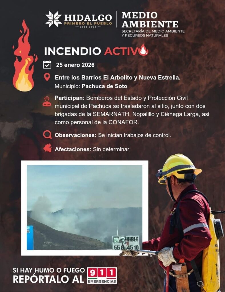 Al sitio acudieron elementos del Cuerpo de Bomberos del Estado y personal de Protección Civil municipal de Pachuca, quienes iniciaron labores de control y combate del fuego. Asimismo, se sumaron dos brigadas de la Secretaría de Medio Ambiente y Recursos Naturales de Hidalgo (Semarnath), provenientes de Nopalillo y Ciénega Larga, así como personal de la Comisión Nacional Forestal (Conafor).
