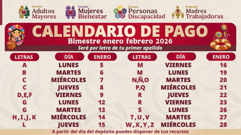 La Secretaría de Bienestar, encabezada por Ariadna Montiel Reyes, dio a conocer el calendario oficial de pagos correspondiente al primer bimestre de 2026, que abarca los meses de enero y febrero.