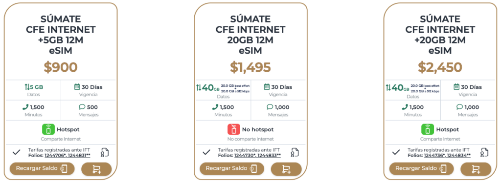 - También hay paquetes semestrales eSIM desde 490 pesos y anuales desde 900 pesos.