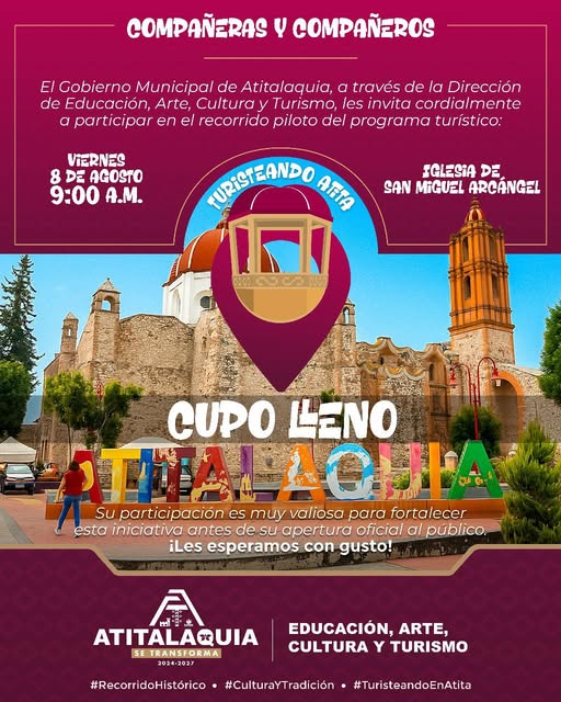 A partir de este 8 de agosto, el municipio de Atitalaquia pondrá en marcha “Turisteando en Atita”, un nuevo proyecto de recorridos culturales que busca acercar a visitantes y habitantes a los tesoros históricos, arquitectónicos y gastronómicos del municipio.