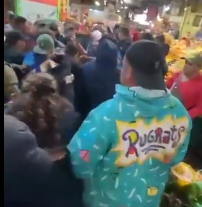Locatarios de la Central de Abastos de Pachuca retuvieron a una pareja de presuntos carteristas, en redes sociales se difundió el video en el que se muestra como los locatarios amedrentan con golpes y empujones a los presuntos delincuentes para sacarlos.
