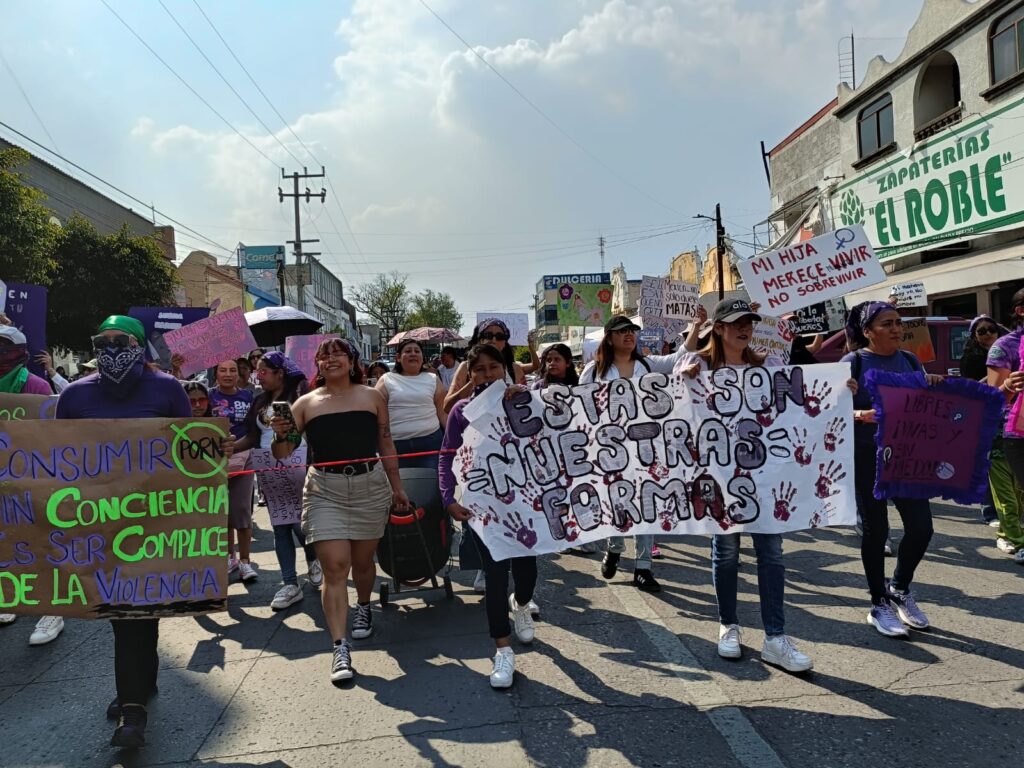 Al contingente se sumaron niñas, algunas de ellas con consignas como: “las niñas no se tocan”, mismas que fueron respaldadas por el contingente de mujeres que recalcaron la importancia de proteger las infancias ante el incremento de reportes de agresiones sexuales contra niñas y adolescentes en la región Tula-Tepeji, el estado y el país.