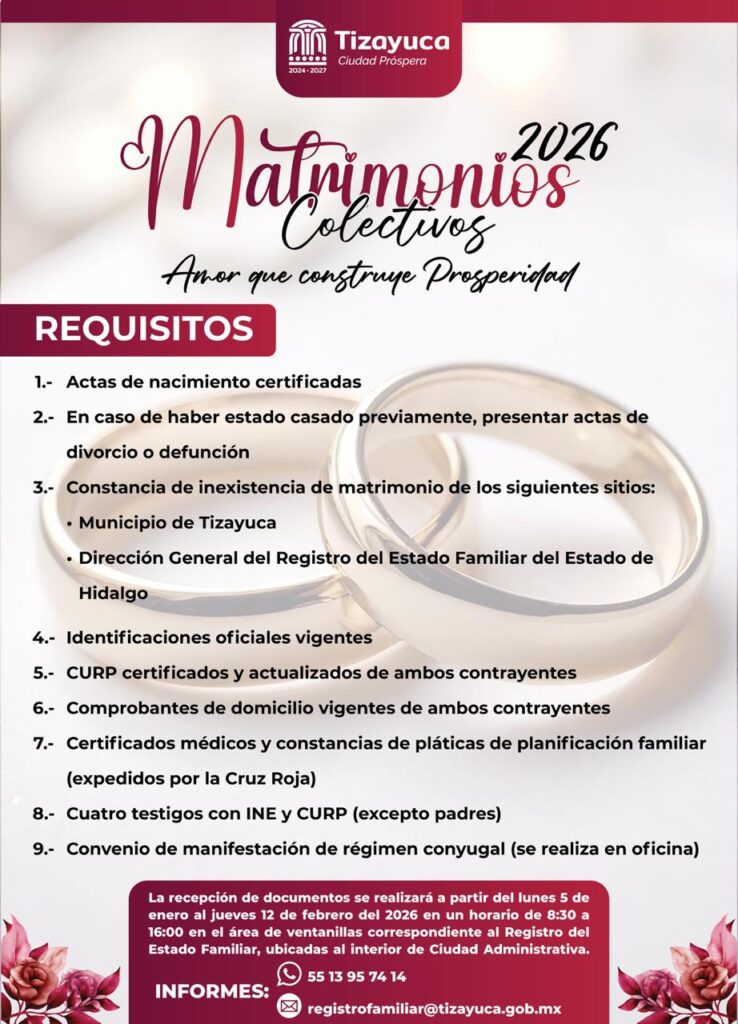 Matrimonios colectivos en Tizayuca: la convocatoria ya está abierta