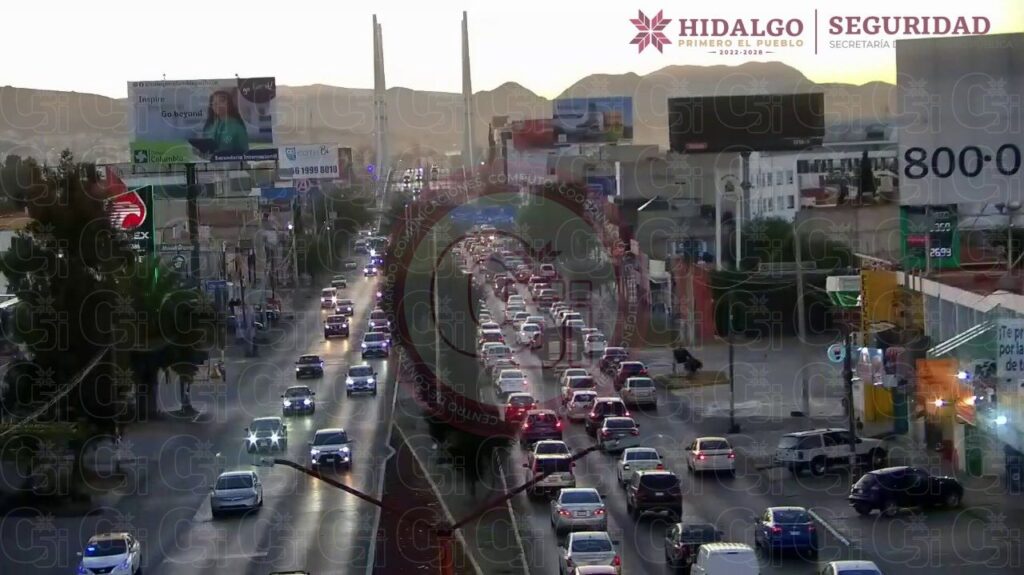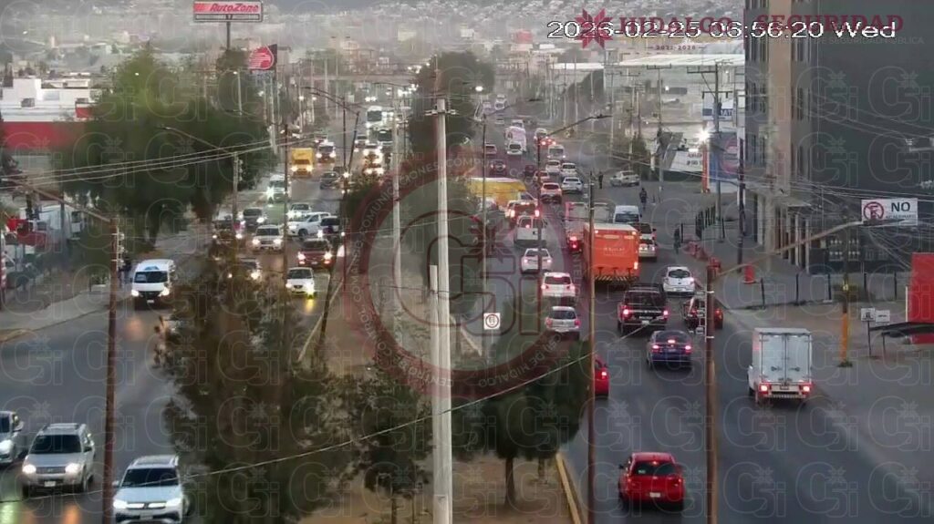 Se registran fuertes congestionamientos en la carretera México–Pachuca y en los bulevares Felipe Ángeles y Luis Donaldo Colosio en ambos sentidos. La carretera Pachuca–Ciudad Sahagún mantiene circulación moderada, mientras que el bulevar Santa Catarina presenta ligera carga vehicular.
