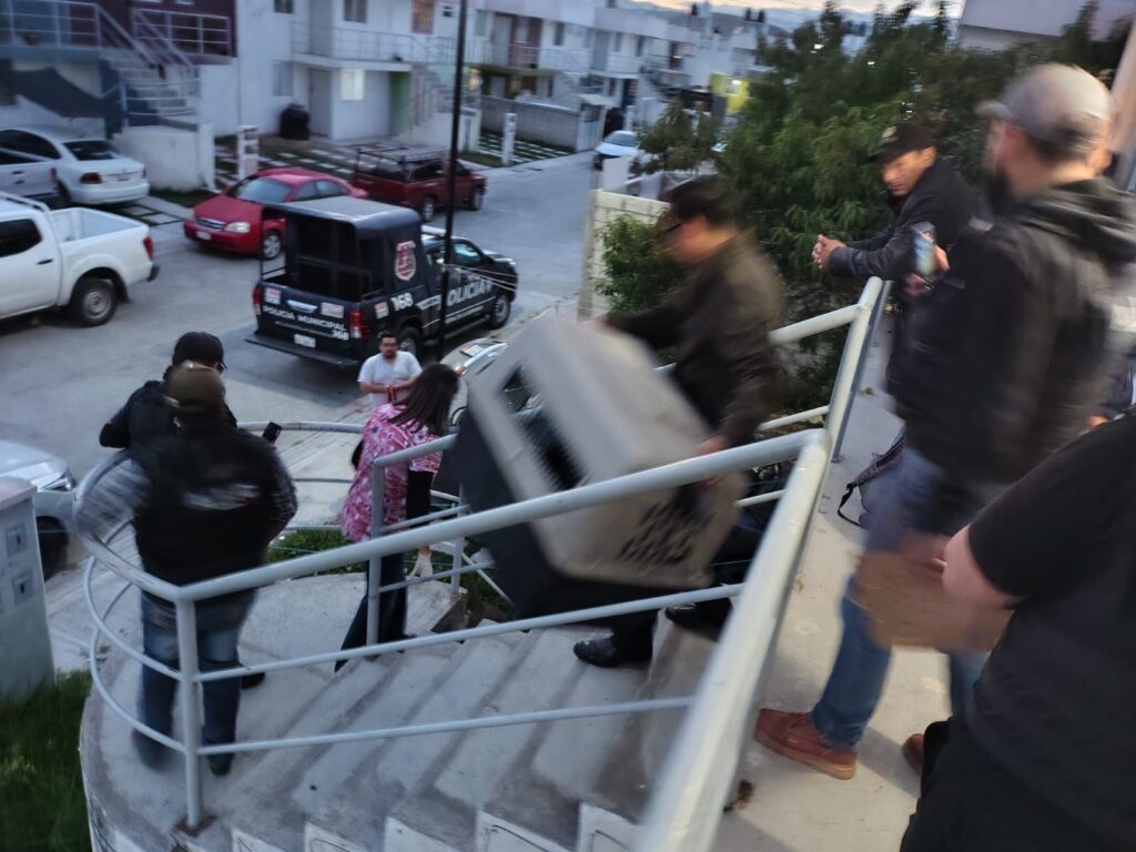 Durante el cateo, las autoridades localizaron a una perra de raza pitbull, color café, que fue puesta bajo resguardo para recibir atención y valoración médica en el Centro de Control Canino de Mineral de la Reforma.