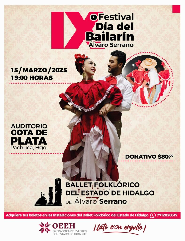 El próximo 15 de marzo a las 19:00 horas, el Auditorio Gota de Plata, en Pachuca, será el escenario del Noveno Festival del Día del Bailarín, un evento que promete una noche llena de tradición, música y danza folklórica.